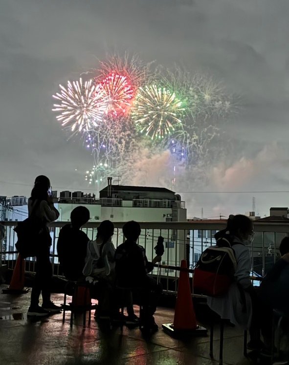 打ち上げが始まる時間になるとみんなで屋上に移動して鑑賞します。
